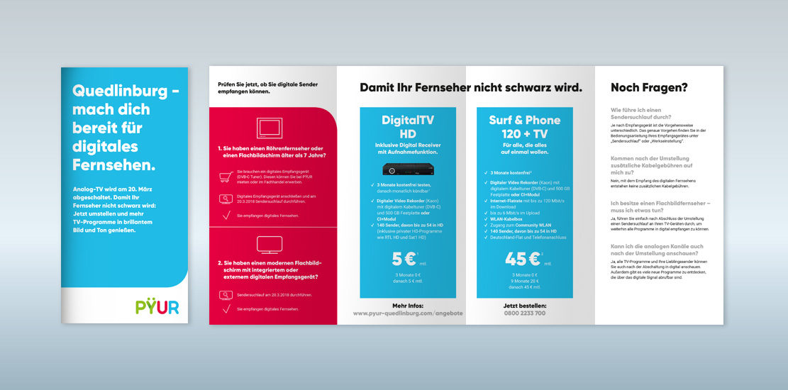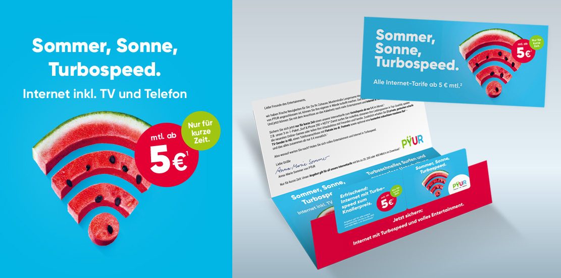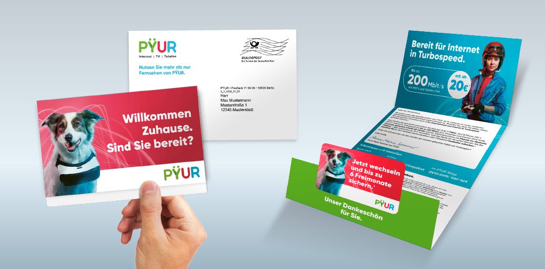 Für PŸUR, ein Unternehmen der Tele Columbus Gruppe, sind wir im Bereich Dialogmarketing zuständig und setzen regelmäßig mehrstufige, zielgruppenspezifische und differenzierte Mailinganstöße um. Die Tele Columbus Gruppe ist der drittgrößte Kabelnetzbetreiber in Deutschland und versorgt rund 3,6 Millionen Haushalte mit Fernsehen, Telefondiensten, superschnellem Internet und Mobilfunk.